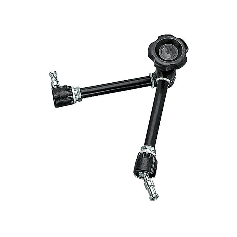 Der berühmte "Magic Arm"! Haltearm mit zentralem, feststellbarem Gelenk. Zentrale und variable Blockierung über einen großen Drehknopf. Mit einem Griff lassen sich alle drei Gelenke arretieren. Jedes der drei Gelenke kann stufenlos um 360° gedreht werden. Mit dem bewährten Manfrotto Zubehör, wie 143BKL ausgestattet, erlaubt Ihnen dieser Gelenkarm eine genaue Ausrichtung Ihrer Kamera. Der Anschluss-Stift an beiden Enden passt in alle 5/8? Sockel, zusätzlich ausgestattet mit einem 1/4" und einem 3/8" Innengewinde. Der Arm lässt sich besonders gut mit der Super Clamp 035C verbinden.